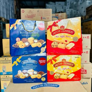 Bánh quy bơ hộp thiếc Jacob Jensen 90g được nhập khẩu trực tiếp từ Malaysia. Đây hộp bánh quy bơ được nướng có nhiều hình dạng với kích cỡ cực nhỏ, phẳng và ngọt.