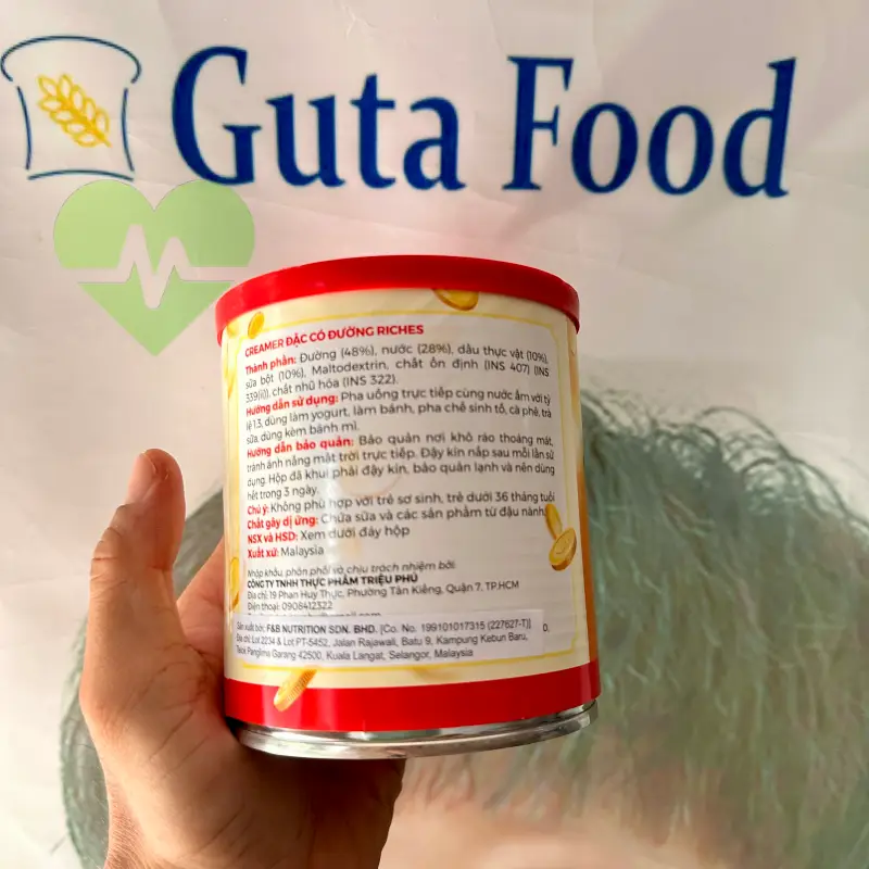 - Lý tưởng cho gia đình và kinh doanh: Với trọng lượng lên tới 1kg, Sữa đặc Riches là sự lựa chọn lý tưởng cho cả gia đình sử dụng hàng ngày và các doanh nghiệp trong ngành thực phẩm.