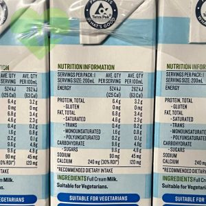 - Dinh dưỡng: Sữa nguyên kem cung cấp đầy đủ dinh dưỡng từ sữa bò, bao gồm protein, canxi, kali, và các loại vitamin cần thiết cho sức khỏe.
