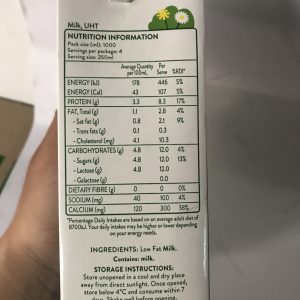 Sữa tươi Australia Own Low Fat ít béo được nhập khẩu tại Úc. Đây là sản phẩm sữa được sản xuất dựa trên dây chuyền công nghệ tiên tiến hiện đại nhất của Úc. Sữa được làm từ sữa bò tươi 100% nguyên chất và đã được tách béo. Tuy nhiên trong sữa vẫn giữ lại một hàm lượng béo nhỏ. Một hàm lượng đủ để đáp ứng đủ nhu cầu dinh dưỡng của con người. Hàm lượng béo này vẫn phù họp với người béo phì và người đang ăn kiêng.